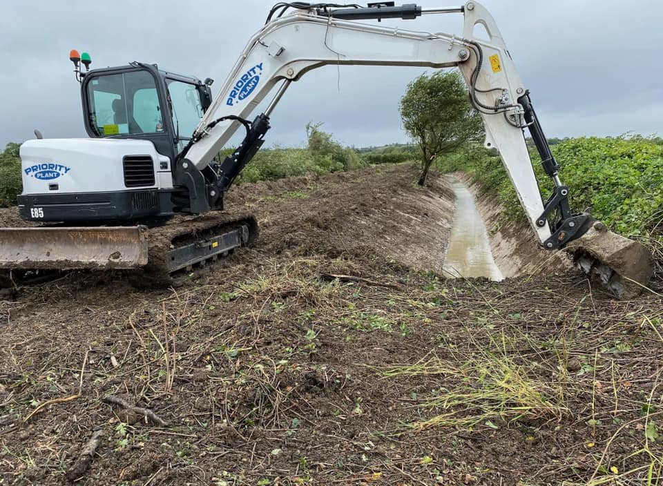 I was involved with solving drainage issues on some arable land. The ditch levels were higher than the drainage outlets , this was stopping the water draining away causing the fields to sit wet. RAC Contractors Ltd put a 5 year plan together using their expertise and knowledge in soil management to give this block of land a new lease of life , planting cover crops to get root structure, control weeds using less chemical , encourage wildlife , insects and butterflies also return vital nutrients into the ground. My part was to clear the ditches, this involved removing some self set blackthorn, dead trees and hedge. Then clear the ditch, spread the top soil leaving a level area for planting a new hedge and trees. With only 300mm of fall over 195m it needed to be precise, having the rite equipment for the job always helps so a massive thank you to Oliver Newton Priority Plant for the fantastic service as usual, also thank you to the team from @RAC Contractors Ltd for their support .