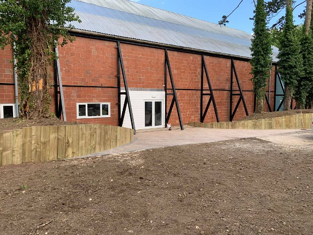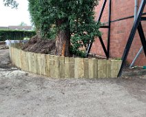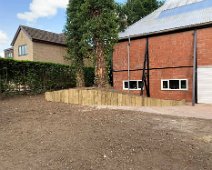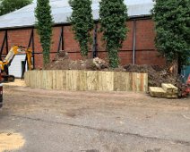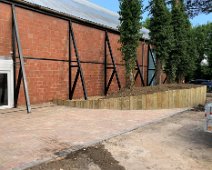Landscaping job completed. Upright sleeper retaining walls with block paving to create new entrance for office.