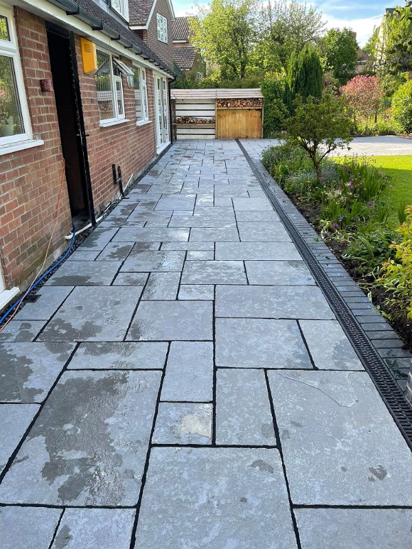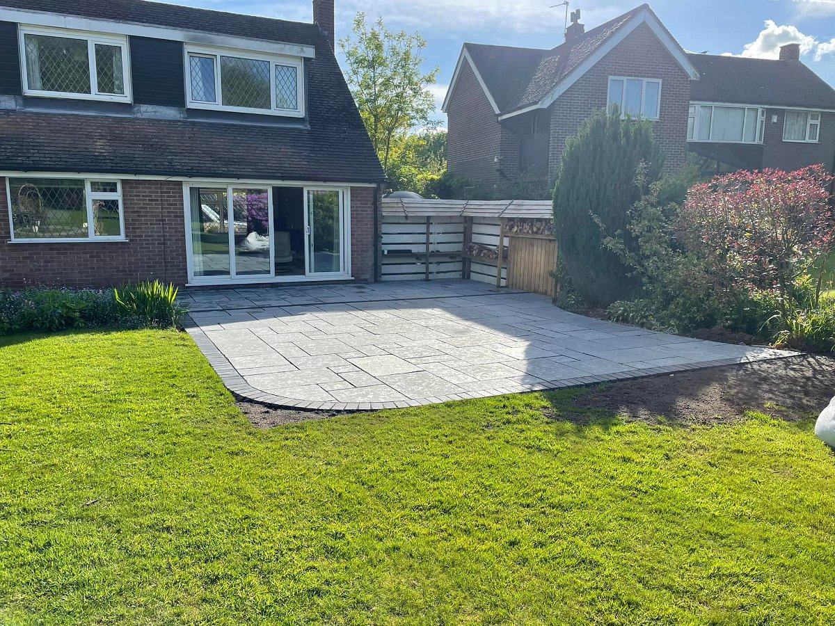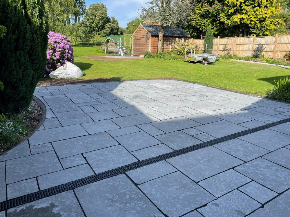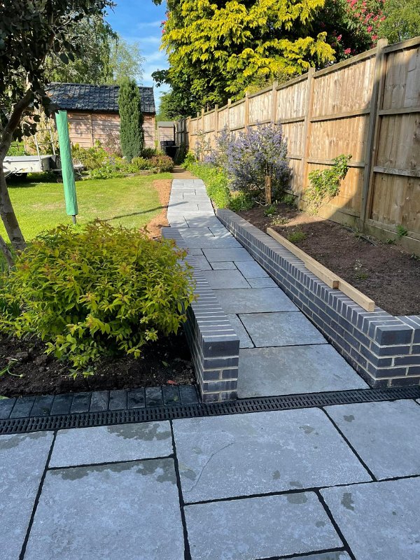 Some before and after photos of a job completed near Ashbourne. Old concrete slabs and walling removed and replaced with vintage blue limestone supplied by Paving Stones Direct UK Ltd finished of with a kadapha block edging and a new retaining wall built. Thanks to William Hercock Ltd for supplying all other materials